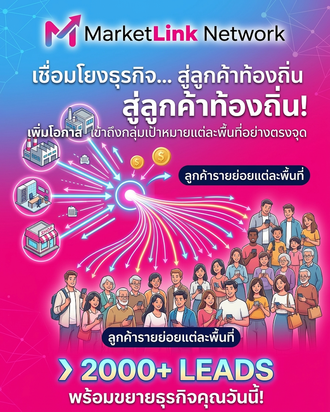 เปิดรับผู้ร่วมสนับสนุนบริษัท MarketLink Network สร้างลูกค้าจำนวน 2000 Leads